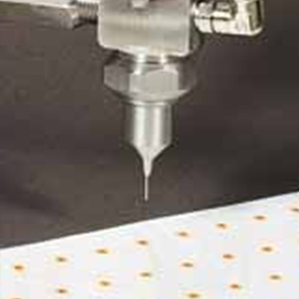 微量噴涂精密低量低壓 (LVLP)噴涂采用口徑在 23-33 (內(nèi)徑 0.013"-0.004") 的點膠針頭產(chǎn)生直徑低至 0.0625" 的