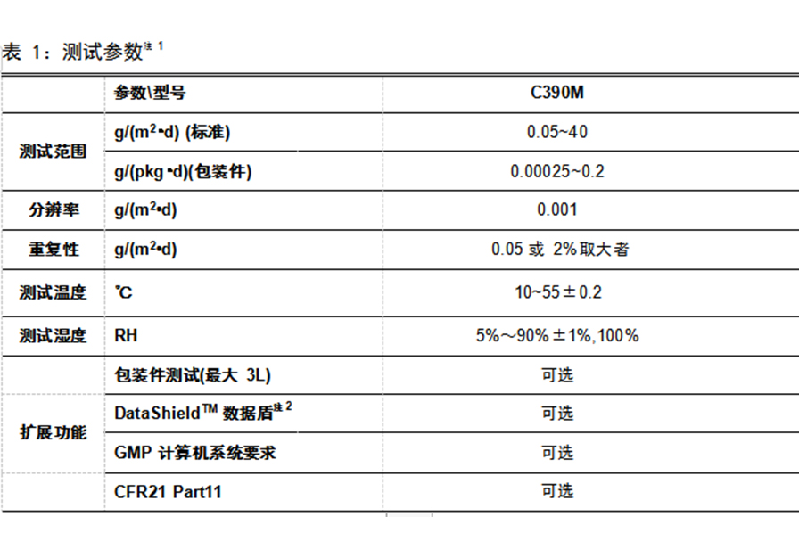 注 1:表中各項參數是在 Labthink 實驗室、由專業操作人員,依據相關實驗室環境標準的要求和條件測量得出。